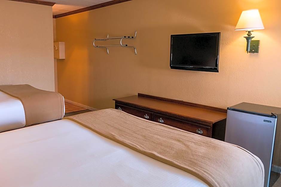 This room offers a cable TV and view of the parkway.